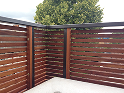 Custom made horizontal contemporary red wood cladding with steel joiners - remodelling of a balcony.